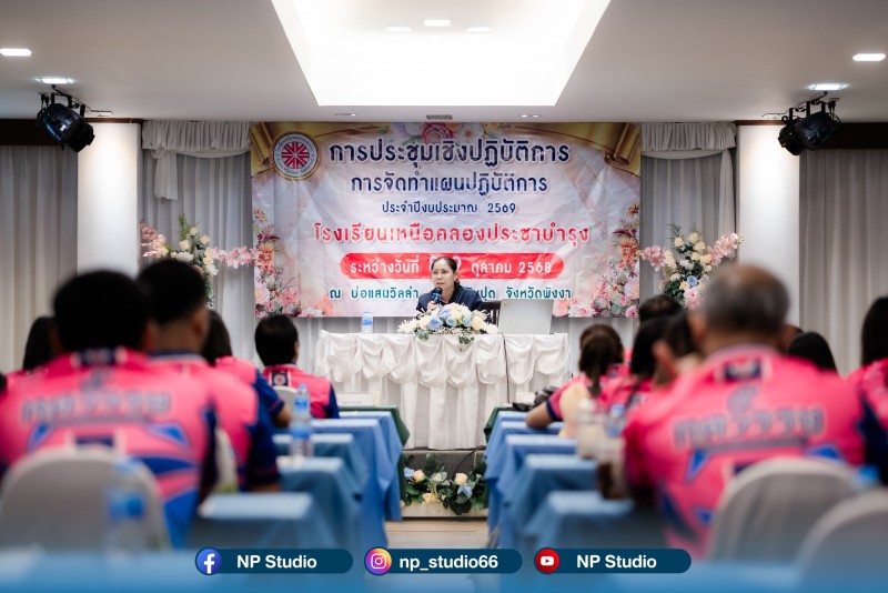 วันที่ 8 ตุลาคม 2568 กลุ่มบริหารงบประมาณ โรงเรียนเหนือคลองประชาบำรุง โดย นางสาวพรพิมล แก้วนาง รองผู้อำนวยการกลุ่มบริหารงบประมาณและคณะ ได้จัดโครงการ “การจัดทำแผนปฏิบัติการประจำปีงบประมาณ พ.ศ. 2569” ขึ้นเพื่อเปิดโอกาสให้คณะผู้บริหาร ครู และบุคลากรทางการศึกษา ได้มีส่วนร่วมในการวิเคราะห์ วางแผน และจัดทำโครงการต่าง ๆ ให้สอดคล้องกับวิสัยทัศน์ พันธกิจ และกลยุทธ์การพัฒนาโรงเรียน อันจะนำไปสู่การพัฒนาคุณภาพการศึกษาอย่างต่อเนื่องและยั่งยืน โดยมี คณะผู้บริหาร ครูและบุคลากรทางการศึกษา โรงเรียนเหนือคลองประชาบำรุง จำนวน 130 คน ซึ่งมี นางปัญญธิดา อัตบุตร ผู้อำนวยการโรงเรียนเหนือคลองประชาบำรุง เป็นประธานในพิธีเปิด ในการนี้ ทางโรงเรียนได้รับเกียรติจากคณะที่ปรึกษาคณะกรรมการสถานศึกษาโรงเรียนเหนือคลองประชาบำรุง นำโดย นายประดิษฐ์ ยศตันติ, นายสุเทพ ตั้นเอง และนายสมศักดิ์ ณ ถลาง ได้เข้าร่วมการอบรมและให้คำแนะนำอย่างเป็นกันเอง ช่วงบ่ายจัดกิจกรรมกีฬาสานสัมพันธ์ให้กับคณะครูและบุคลากรทางการศึกษาและในภาคกลางคืนเป็นการจัดงานเลี้ยงสังสรรค์ให้กับคณะครูโรงเรียนเหนือคลองประชาบำรุงและคุณครู 2 ท่านที่ย้ายไปดำไรงตำแหน่งครูที่สถานศึกษาแห่งใหม่ในจังหวัดสงขลา คือ คุณครูนูรานี ยาซิ ครูกลุ่มสาระการเรียนรู้สุขศึกษาและพลศึกษาและคุณครูวาสนาา เลาะยี ครูกลุ่มสาระการเรียนรู้วิทยาศาสตร์และเทคโนโลยี บรรยากาศเต็มไปด้วยรอยยิ้มและความสุข ณ บ่อแสนวิลล่า จังหวัดพังงา |