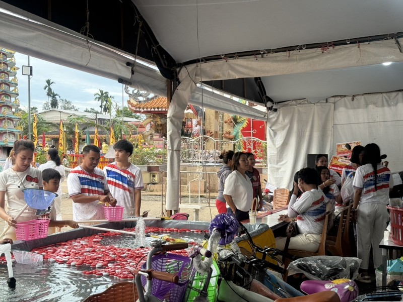 กิจกรรมนาวาพาโชค ในงานถือศีลกินเจอำเภอเหนือคลอง ณ ศาลเจ้าเฉ้งจุ้ยจ้อซู้ก๋งเหนือคลอง อำเภอเหนือคลอง จังหวัดกระบี่