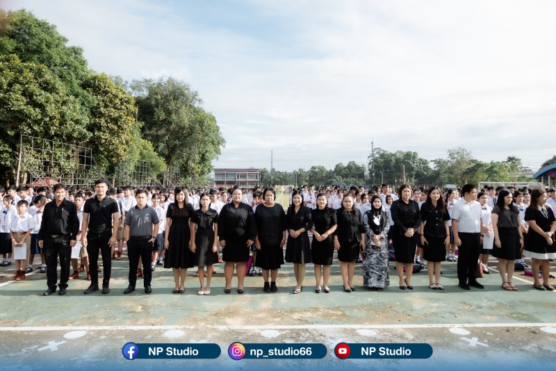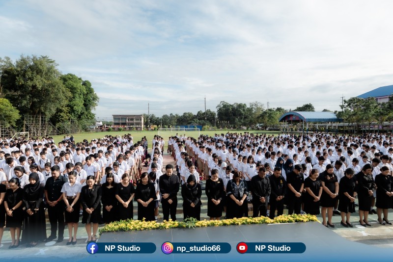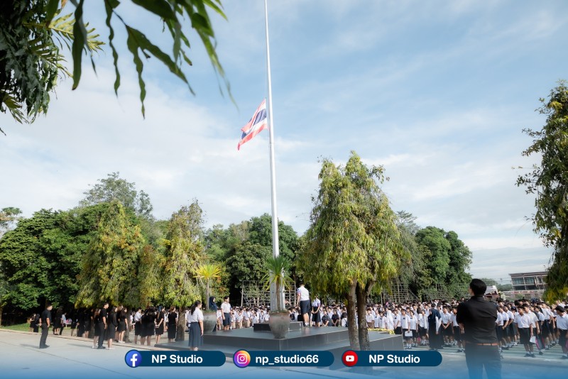 วันที่ 30 ตุลาคม 2568 โรงเรียนเหนือคลองประชาบำรุง นำโดย นางปัญญธิดา อัตบุตร ผู้อำนวยการโรงเรียนเหนือคลองประชาบำรุง พร้อมด้วยคณะผู้บริหาร คณะครู บุคลากรทางการศึกษา และนักเรียนทุกระดับชั้น ได้ร่วมกันจัดพิธีถวายความอาลัย และน้อมรำลึกในพระมหากรุณาธิคุณอันหาที่สุดมิได้ของสมเด็จพระนางเจ้าสิริกิติ์ พระบรมราชินีนาถ พระบรมราชชนนีพันปีหลวง เนื่องในโอกาสการเสด็จสวรรคต ภายในพิธี ผู้บริหาร คณะครู บุคลากร และนักเรียนได้พร้อมใจกันยืนสงบนิ่งเป็นเวลา 1 นาที เพื่อแสดงความอาลัยอย่างสุดซึ้ง และร่วมกันน้อมสำนึกในพระมหากรุณาธิคุณที่ทรงมีต่อพสกนิกรชาวไทยทุกหมู่เหล่า ตลอดระยะเวลาที่ทรงปฏิบัติพระราชกรณียกิจนานัปการ อันเป็นประโยชน์สุขแก่ประเทศชาติและประชาชน ณ บริเวณหน้าเสาธง โรงเรียนเหนือคลองประชาบำรุง |