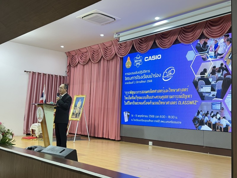 วันที่ 14-15 พฤศจิกายน 2568 กลุ่มสาระการเรียนรู้คณิตศาสตร์และกลุ่มสาระการเรียนรู้วิทยาศาสตร์และเทคโนโลยี โดย คุณครูเนตรนภา หนูเนื้อ,คุณครูขนิษฐา กรกำแหง,คุณครูกนกวรรณ มณีฉายและคุณครูประไพภรณ์ สรวงชัยภูมิ เข้าร่วมอบรมเชิงปฏิบัติการหัวข้อ "การพัฒนาการสอนคณิตสาสตร์และวิทยาศาสตร์ให้เป็นชั้นเรียนแบบสืบเสาะควบคู่สถานการณ์ปัญหาในชีวิตจริงด้วยเครื่องคำนวณวิทยาศาสตร์ CLASSWIZ" เพื่อสร้างห้องเรียนนำร่องในการพัฒนาทักษะการคิด่องในการพัฒนาทักษะการคิดและการพัฒนาสมรรถนะการจัดการเรียนรู้เชิงรุกผ่านกระบวนการเรียนรู้แบบสืบเสาะ (inquiry-based learning) และสถานการณ์ปัญหาในชีวิตจริง (real-world problem) ด้วยเครื่องคำนวณวิทยาศาสตร์CLASSWIZ ณ โรงเรียนเตรียมอุดมศึกษา ภาคใต้ จังหวัดนครศรีธรรมราช |