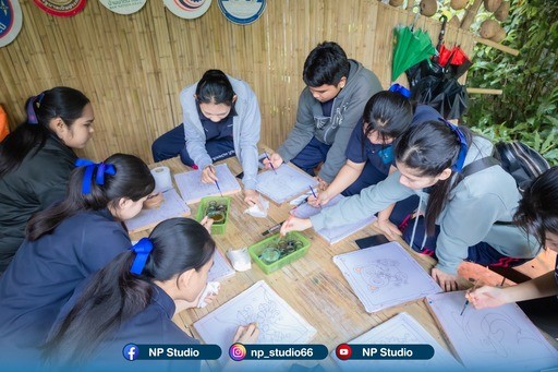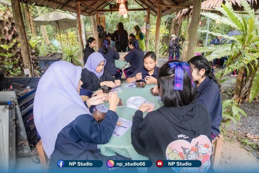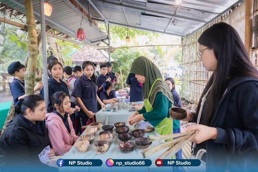 วันที่ 22 พฤศจิกายน 2568 ห้องเรียน SMA โรงเรียนเหนือคลองประชาบำรุง โดย คุณครูเนตรนภา หนูเนื้อ หัวหน้าโครงการห้องเรียน SMAและคณะ นำนักเรียนห้องเรียน SMA ระดับชั้นมัธยมศึกษาปีที่ 1/2และ ชั้นมัธยมศึกษาปีที่ 4/8 จำนวน 56 คน เข้าร่วมกิจกรรมศึกษาแหล่งเรียนรู้และทัศนศึกษาชุมชนบ้านนาตีน เพื่อให้นักเรียนได้เรียนรู้ภูมิปัญญาท้องถิ่นผ่านการสาธิตการประดิษฐ์ผลิตภัณฑ์จากกะลามะพร้าว การทำผ้าบาติก การทำขนมทุ่งโพรงและการทำขนมจาก โดยได้รับเกียรติจากวิทยากรของชุมชนมาให้ความรู้กับนักเรียน ทำให้นักเรียนได้รับความรู้ ทักษะและประสบการณ์ตรงในชีวิตประจำวันและเข้าใจวิถีชีวิตของชุมชนมากยิ่งขึ้น ในการนี้ นางปัญญธิดา อัตบุตร ผู้อำนวยการโรงเรียนเหนือคลองประชาบำรุง ได้ให้เกียรติเยี่ยมชมการทำกิจกรรมของนักเรียน พร้อมทั้งเข้าร่วมกิจกรรมดังกล่าวร่วมกับนักเรียนอย่างใกล้ชิด บรรยากาศเป็นไปด้วยความสนุกสนานและรอยยิ้มแห่งความสุข ณ ชุมชนบ้านนาตีน อำเภออ่าวนาง จังหวัดกระบี่ |