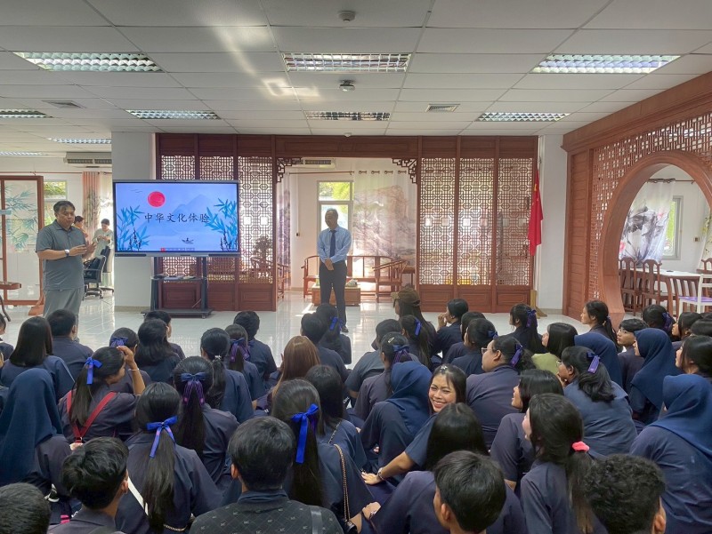 วันที่ 13 ธันวาคม 2568 กลุ่มสาระการเรียนรู้ภาษาต่างประเทศ (ภาษาจีน) โรงเรียนเหนือคลองประชาบำรุง โดย คุณครูปาณัฎฐา ช่วยแท่น หัวหน้าแผนการเรียนภาษาวรรณกรรมและคณะ ได้จัดโครงการพัฒนาศักยภาพการจัดการเรียนรู้ภาษาต่างประเทศ กิจกรรมสัมผัสวัฒนธรรมจีน เพื่อให้นักเรียนได้ศึกษาหาความรู้ด้านภาษาจีนผ่านวัฒนธรรมจีนจากประสบการณ์จริงและเรียนรู้กิจกรรมที่หลากหลายจากเจ้าของภาษาและผู้เชี่ยวชาญทางด้านการเรียนการสอนภาษาจีน โดยมีนักเรียนในแผนการเรียนดังกล่าวเข้าร่วมกิจกรรมจำนวน 80 คน กิจกรรมในครั้งนี้ยังช่วยสร้างแรงบันดาลใจและทัศนคติที่ดีต่อการเรียนภาษาจีน ส่งเสริมให้นักเรียนเห็นคุณค่าและความสำคัญของการเรียนรู้ภาษาต่างประเทศผ่านวัฒนธรรม ทำให้นักเรียนรู้สึกภูมิใจและมีความสุขที่ได้เข้าร่วมกิจกรรม ณ สถาบันขงจื๊อ มหาวิทยาลัยสงขลานครินทร์ วิทยาเขตภูเก็ต จังหวัดภูเก็ต |
