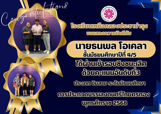 ประกาศผลจัดสรรให้นักเรียนมีที่เรียนโรงเรียนเหนือคลองประชาบำรุง ชั้นมัธยมศึกษาปีที่ 1และ 4 ปีการศึกษา 2568 25 เม.ย. 68